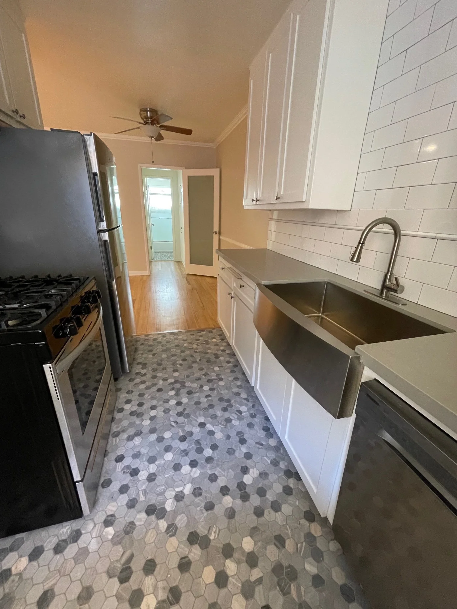 - stainless steel appliances: stove, refrigerator, dishwasher